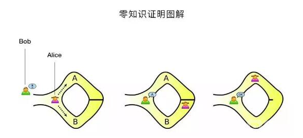 零知识证明能够成立需要具备三个要素,即完整性、可靠性和零知识。举个例子来说就是,假设有一个环形走廊,出口和入口相邻但不互通(在目测距离之内),在这个环形走廊中间的某处有一道锁起来的门,只有拥有钥匙的人才可以通过;这时A要向B证明自己拥有打开这道门的钥匙,用零知识量证明来解决就是,B看着A走进入口并在出口等待,如果A从入口进入通过走廊并从出口走出,则可以证明其拥有打开中间那扇门的钥匙,而在这个过程中,他完全不用向B提供钥匙的具体信息。所以零知识证明实际上是一种概率证明而非确定性证明。