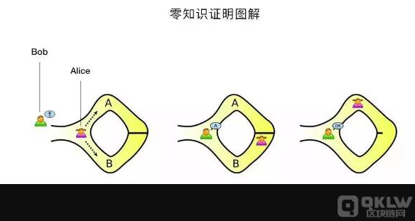 零知识证明能够成立需要具备三个要素,即完整性、可靠性和零知识。举个例子来说就是,假设有一个环形走廊,出口和入口相邻但不互通(在目测距离之内),在这个环形走廊中间的某处有一道锁起来的门,只有拥有钥匙的人才可以通过;这时A要向B证明自己拥有打开这道门的钥匙,用零知识量证明来解决就是,B看着A走进入口并在出口等待,如果A从入口进入通过走廊并从出口走出,则可以证明其拥有打开中间那扇门的钥匙,而在这个过程中,他完全不用向B提供钥匙的具体信息。所以零知识证明实际上是一种概率证明而非确定性证明。