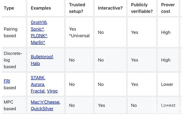 表 1:不同证明系统的高级比较