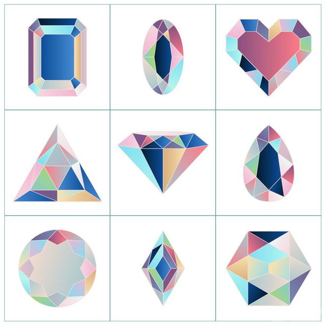 随着 HACD 发展,在2021年8月11日,社区提出了 HIP-5 可视化提案。为每一个 HACD 增加了钻石的视觉。每一枚钻石都独一无二,并有9种不同的形状,16-17个切面和16种颜色来实现。除了如下图中间“锥形钻石”以外,另外8种特异形状出现的概率仅有3%。若是纯色异形,出现的概率更是微乎其微。