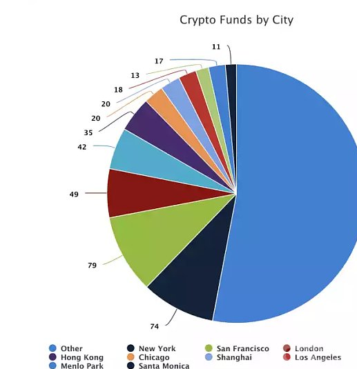 但当我们把目光放到城市上时,这个现象会更加明显。根据 CryptoFund Research 数据,旧金山和纽约拥有世界上最多的加密基金 (>70 家),而伦敦、新加坡和香港以 30-50 家加密基金的数量位居其后,芝加哥、上海、洛杉矶、瑞士楚格、加州门罗帕克和圣莫妮卡则处于 10-20 家加密基金的第三阵营。在地图上也能清楚地看到,加密基金在美国东西部沿海和西欧较为集中,部分位于东亚和东南亚,其他则分布在东欧、西亚和澳洲,而非洲与南美只有零星几家。