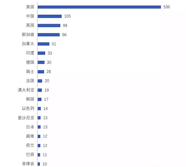 加密行业在各国的发展除了与当地政策密切相关,同时还受到该国经济水平的影响。当我们以潜在投资额为对象来看时,根据 Hutt Capital 数据,目前,位于北美的加密 VC 基金在数量 (68%) 和平均资金量 ($259m/87%) 上都是遥遥领先的。虽然欧洲加密 VC 基金数量相比于亚洲更多,但是资金量上亚洲加密 VC 基金 ($120m) 比欧洲 ($61m) 要占优一些。而资金量超过$500m 的 14 家加密 VC 基金里,有 13 家在北美。由此可见,整个行业的资金来源主要还是在北美,直白一点的话,应该是美国。