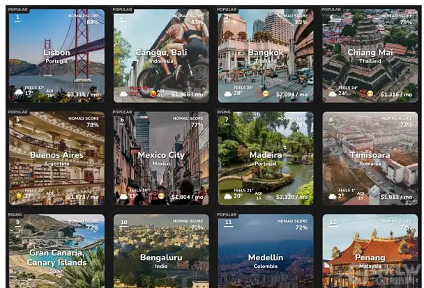 不同于 Nomadlist,Bethenny Carl则根据其个人经历给出了不同的建议,其着重强调了不同人群对生活成本和生活方式的偏好,例如,有人偏好较小的工作压力和更经济实惠的游民生活,而有人则喜欢享受夜生活、到各地进行探索与尝试不同的美食。因此 Carl 基于生活状况、交通、天气、网络、食物与娱乐、医疗、犯罪率等因素给出了截然不同的一份推荐名单,并从低到高附上了生活成本。详情请去到 Carl 的文章了解。这 11 个城市中有 6 个位于欧洲,其余五个散布亚洲和美洲,可见其较为典型的欧美视角。