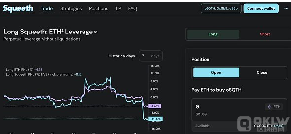 首先是Squeeth,当用户做多时,会买入一个ERC-20代币“oSQTH”,这代表着ETH的平方(Eth^2)。所以,在上涨时,持有sSQTH的收益更高,同样下跌时的亏损也更多。