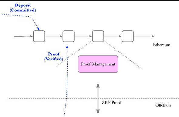 用户转账到路印协议的智能合约,转账在链上确认(链上完成充值)。该操作的状态就是“Committed”。链下的Relay,监测到“Committed”的状态后,更改链下的状态,生成Proof,并将证明提交到链上,此时该“充值”操作的状态为“Verified”-链下也已经完成充值。如果之前的所有操作都是Verified,那该操作的状态就是Finalized(也就是这个状态是确定的,不会被篡改的)。