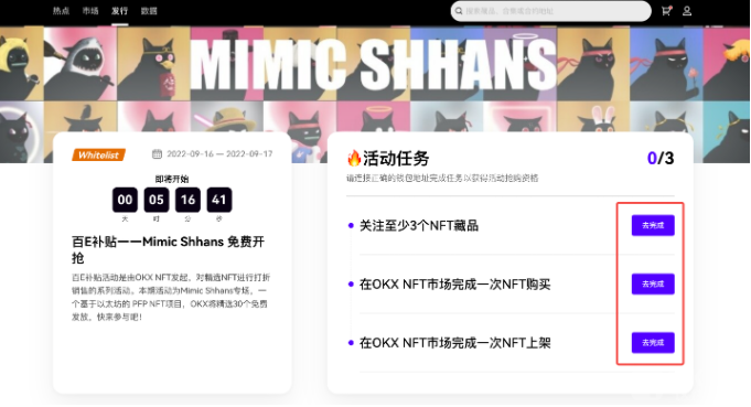 欧易 NFT 发行平台也在持续升级、迭代活动机制,希望通过不同的活动类型,尽可能地让所有用户平等地参与首发活动。