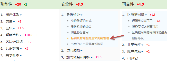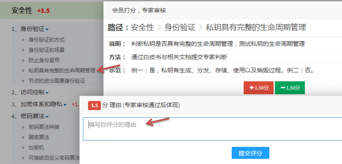 我们在评估分值下属的大项目里面选定你要进行评分的小项目,比如“安全性(一级目录)——身份验证(二级目录)——私钥具有完整的生命周期管理(三级目录)”的“私钥具有完整的生命周期管理”小项目。