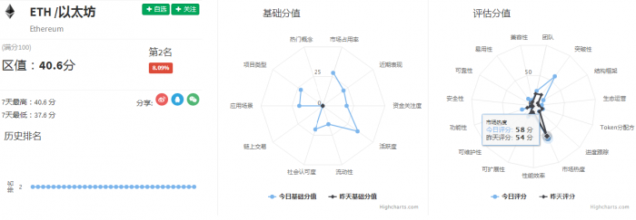 如何为ETH以太坊评分,我们通过区块链网的区值、Redstone评价系统,可以对区块链项目“以太坊”进行评分。评分满分为100分,其中基础分值为40分,由系统通过大数据算法和人工智能分析数据来输出分值,用户无法对基础分值进行打分,
