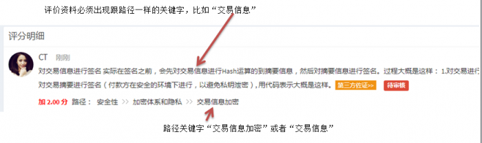 特别要注意路径“路径:安全性>>加密体系和隐私>>交易信息加密”里面的三级路径是“交易信息加密”你的佐证资料必须要包括这个关键字(至少包括一部份),否则系统比对不上将无法通过审核。