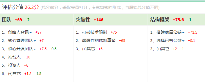 团队、突破性、结构框架、生态运营、Token分配方案; 进度跟踪、市场热度、性能效率、可扩展性、可维护性; 功能性、安全性、可靠性、易用性、兼容性; 评估分值单个项目的分值从1-10分不等,约有500多个小项目。